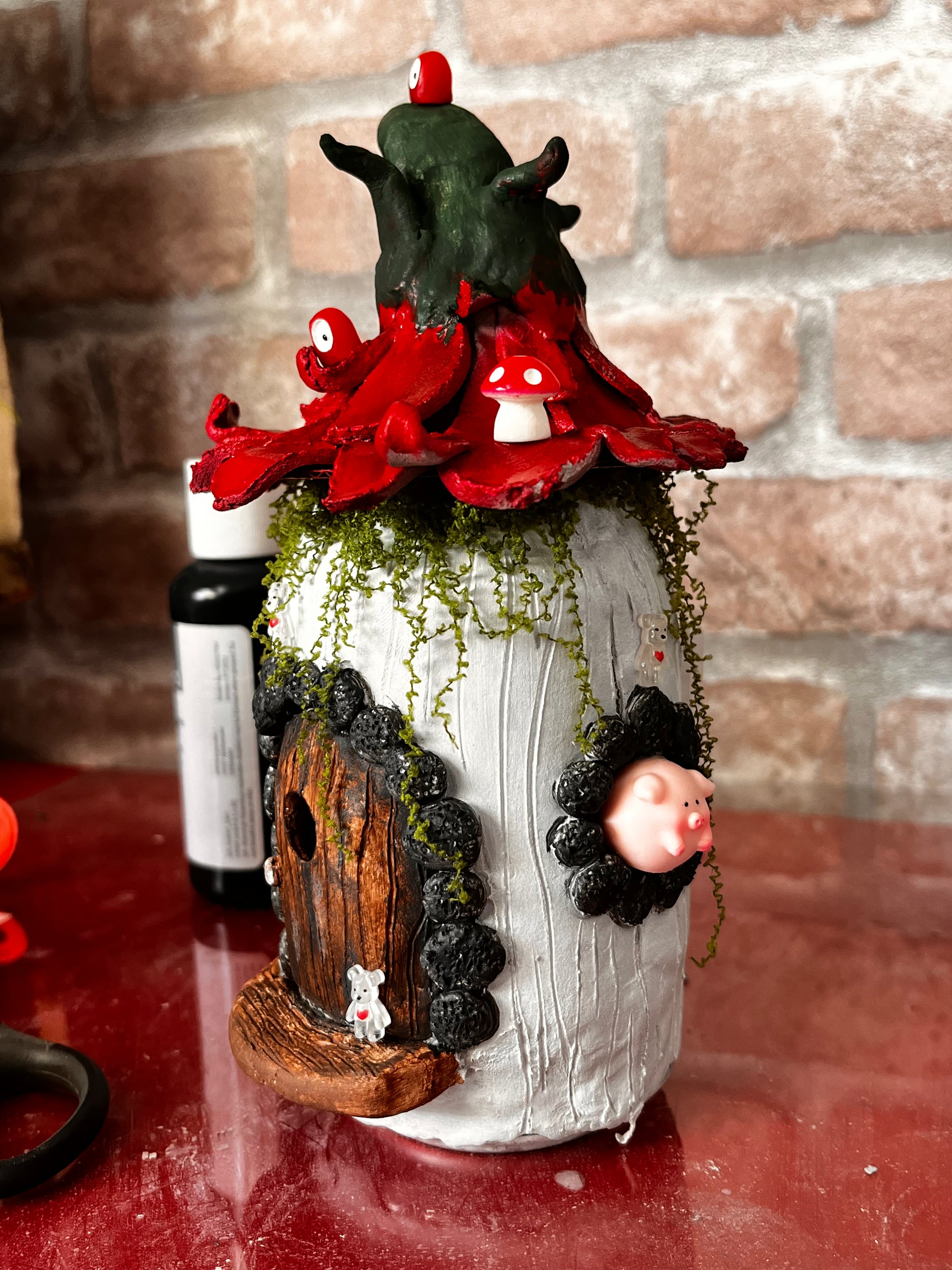 Maison de fée faite entièrement à la main , à base de canette ! ( taille d’une petite canette de coca)