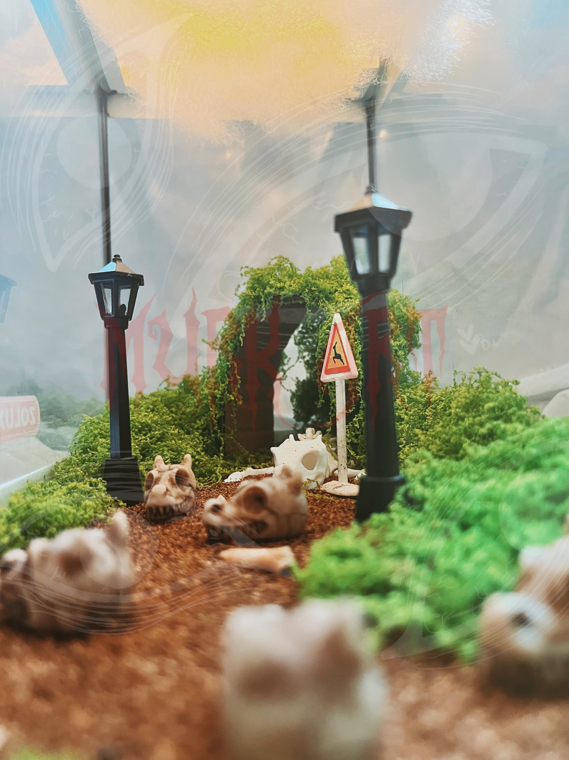 Maquette réalisé dans un aquarium, je l’ai recyclé pour crée une toute nouvelle fonctionnalité, voici « l’antre du dragon déchu ».