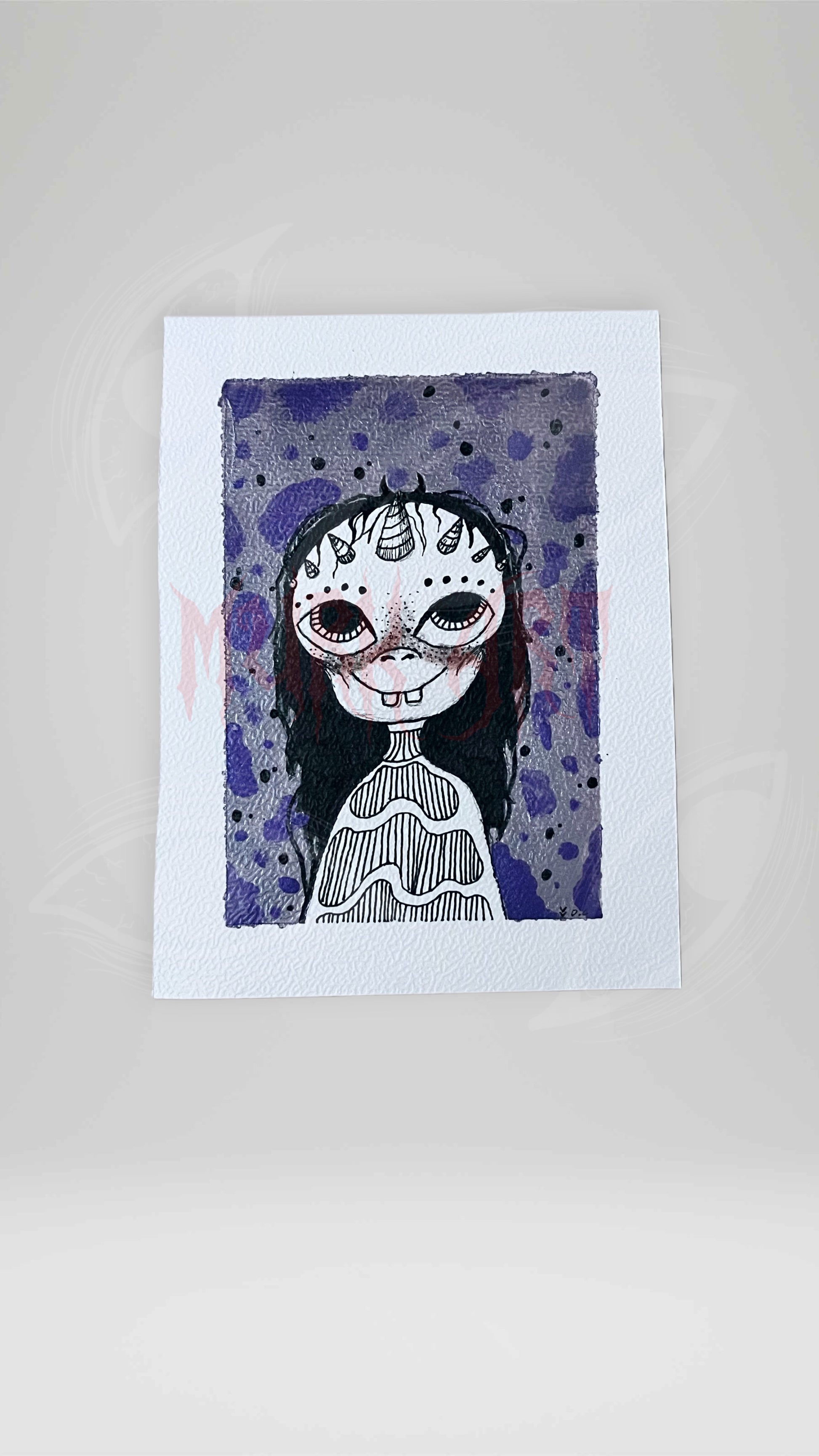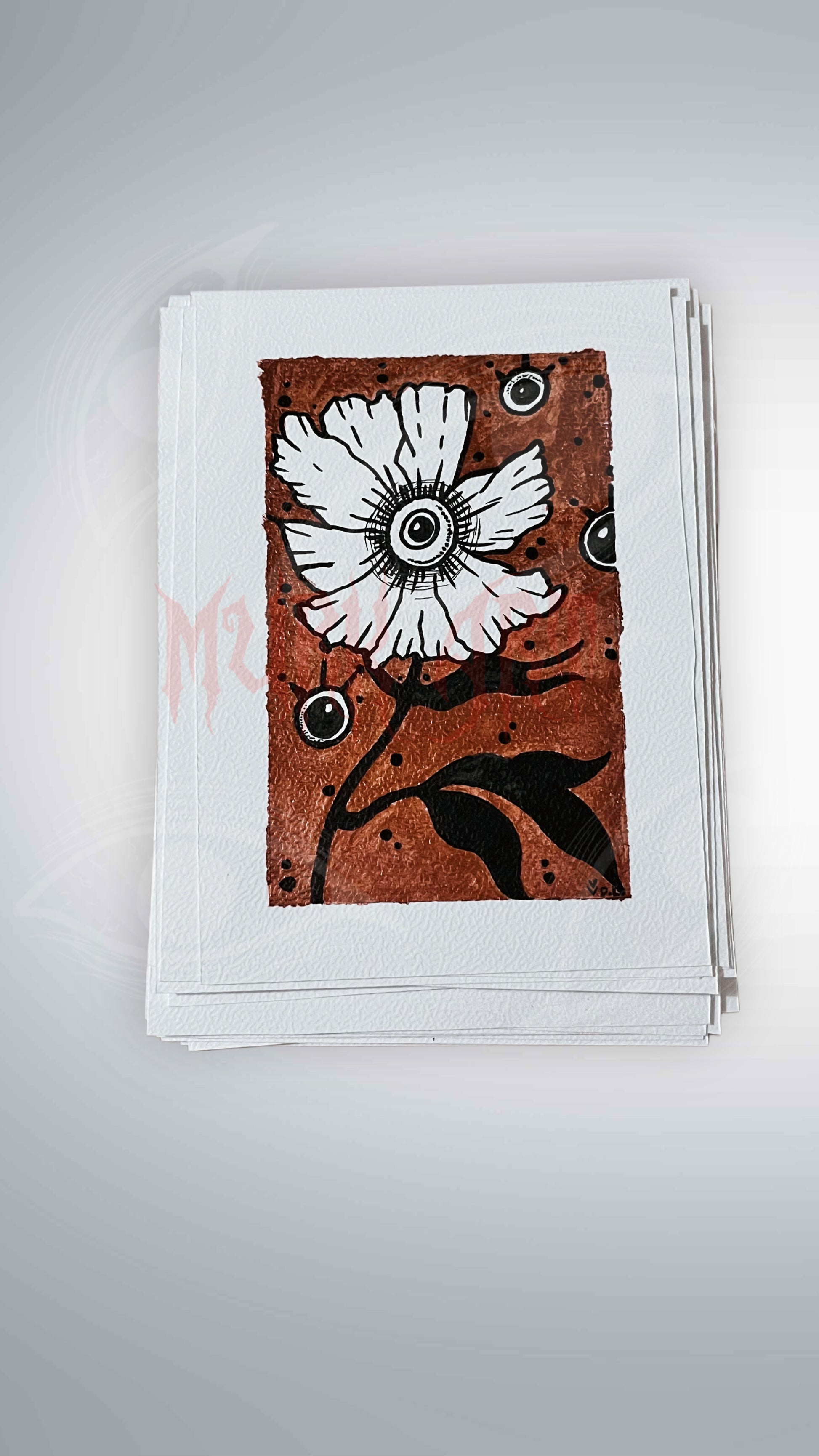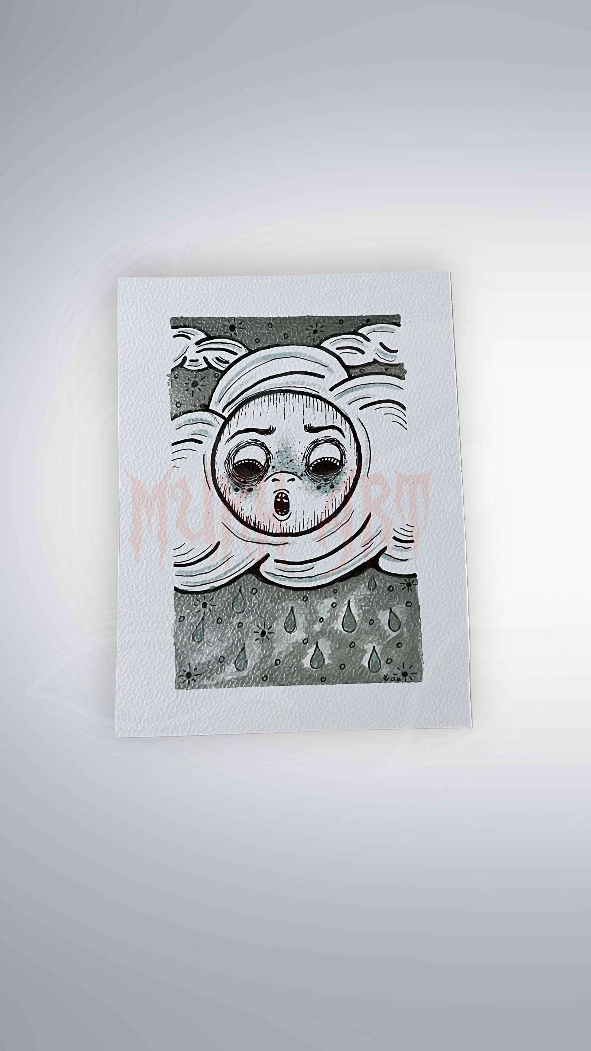 Print fait main à l’aquarelle et au feutre liner noir