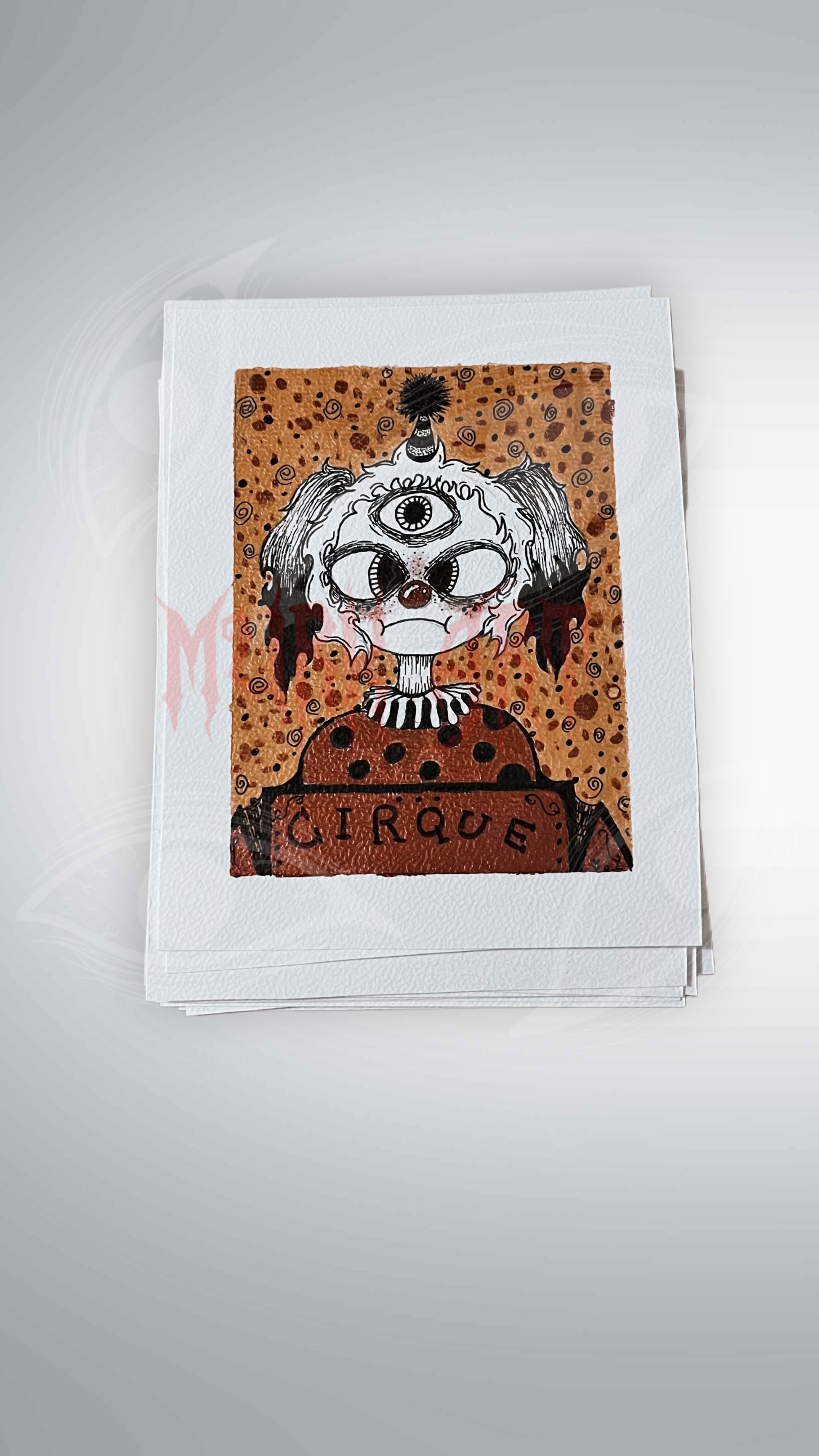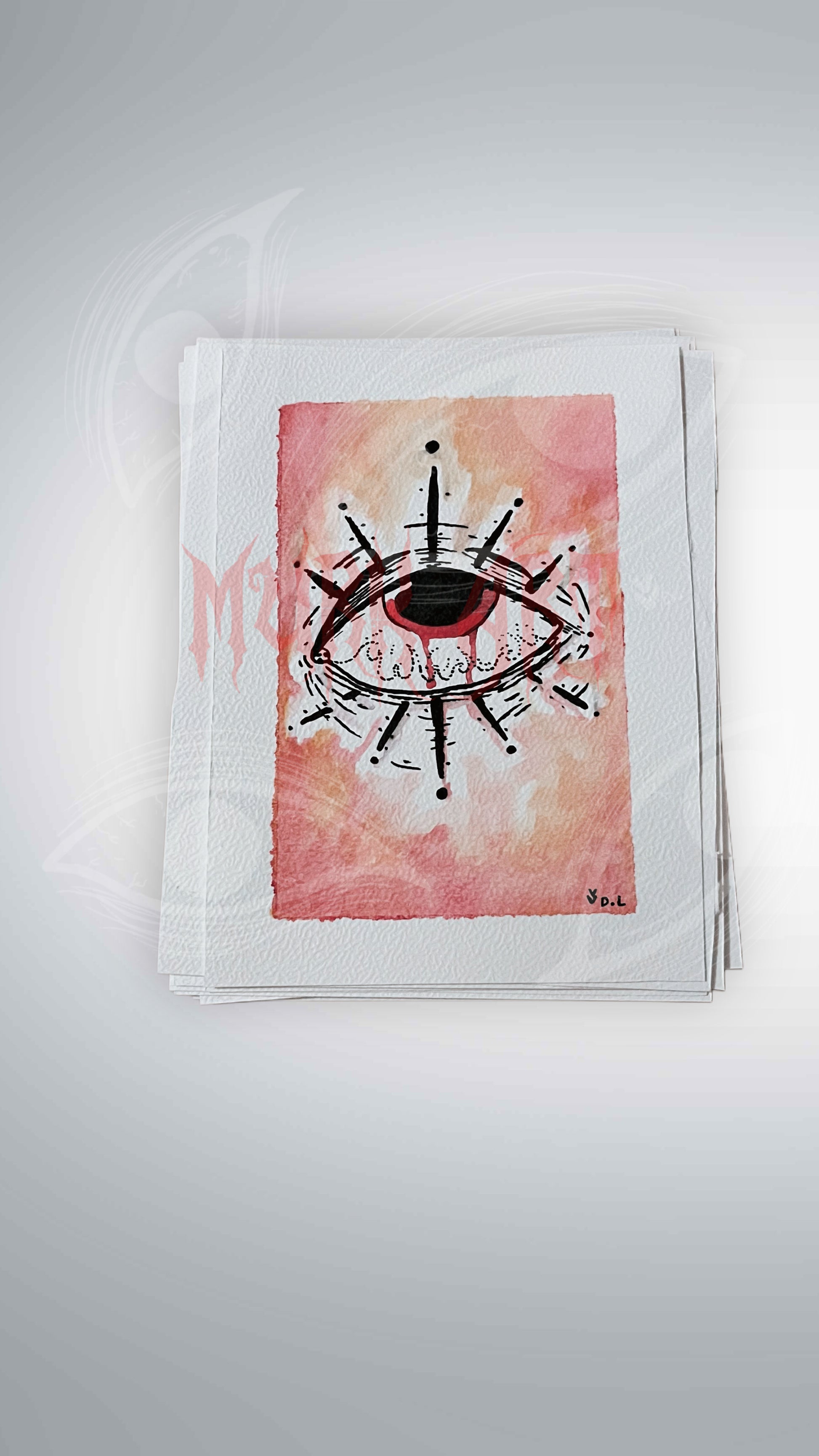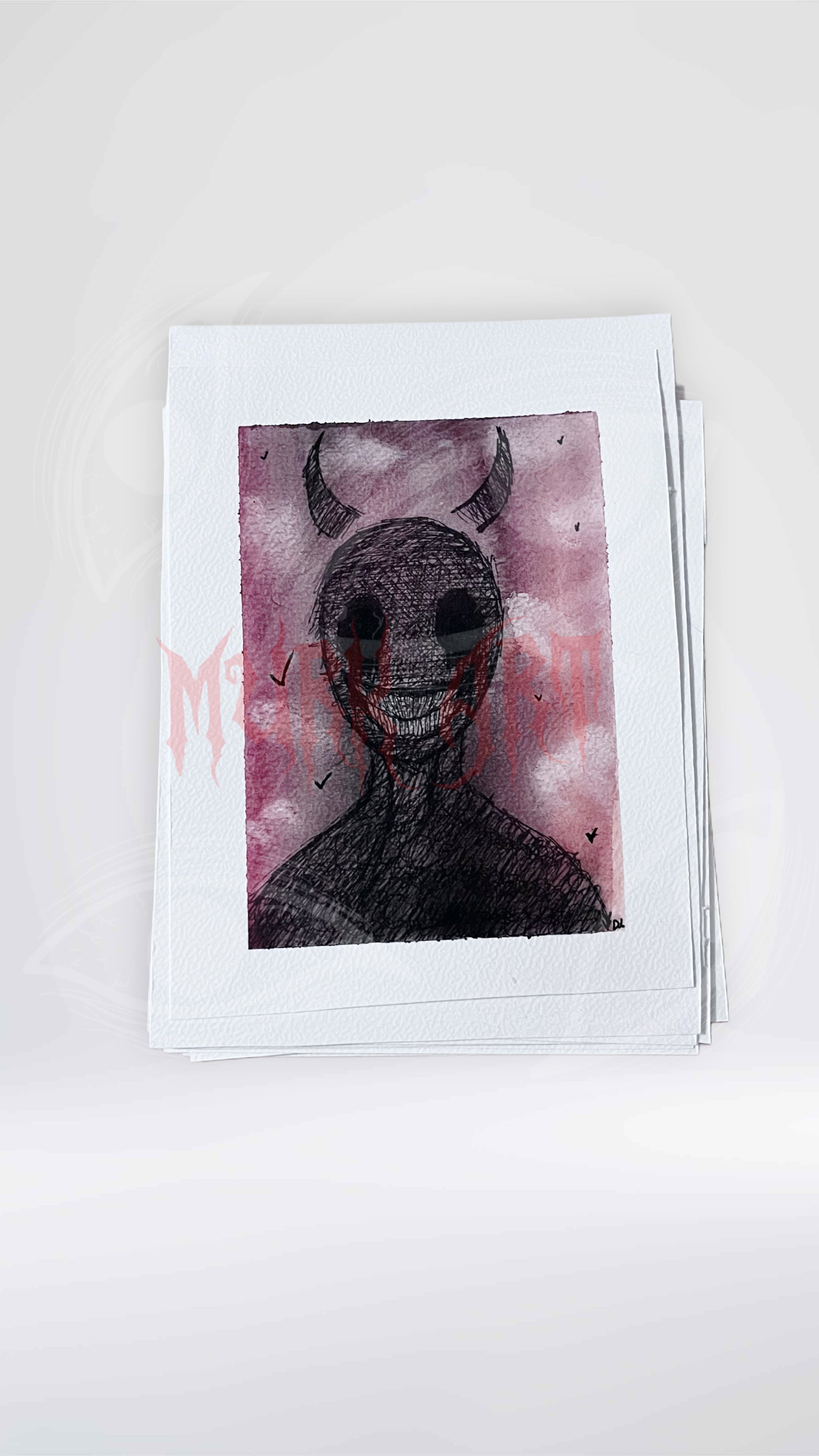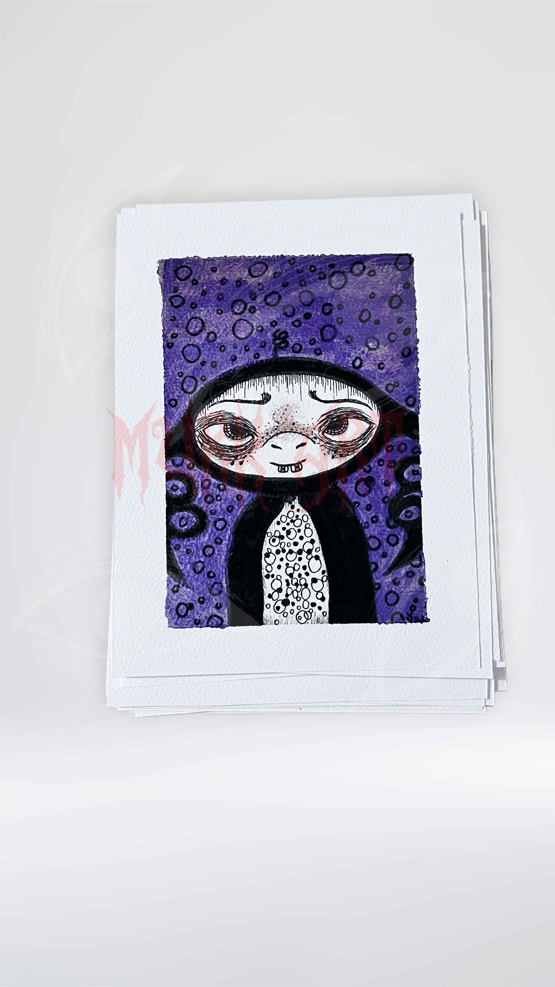 Print fait main à l’aquarelle et au feutre liner noir